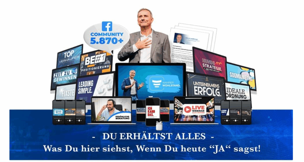 Was Du heute erhältst … PLUS die ganzen BONUS-GESCHENKE … ist die erprobte und tausendfach bewährte Schritt-für-Schritt Anleitung, mit der Du Deine erste Million machen kannst. Dieses Programm ist für alle, die ihre Träume erfüllen, mehr Zeit mit ihrer Familie verbringen und sich endlich von lästigen Geldsorgen befreien wollen.