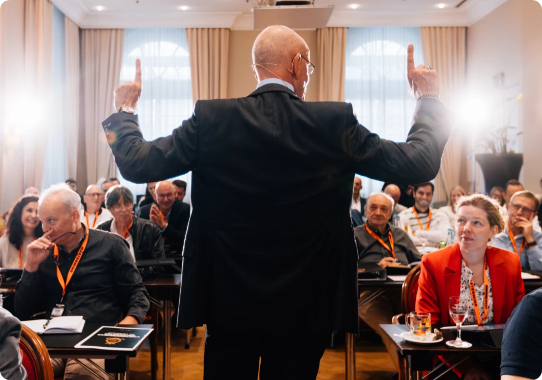 Das ist ein Workshop auf unserem LIVE-Seminar. Es ist ein einzigartiges Format. Lerne 15 erprobte Techniken, mit denen Du souverän und selbstsicher auf jede Einwand-Situation reagieren kannst.